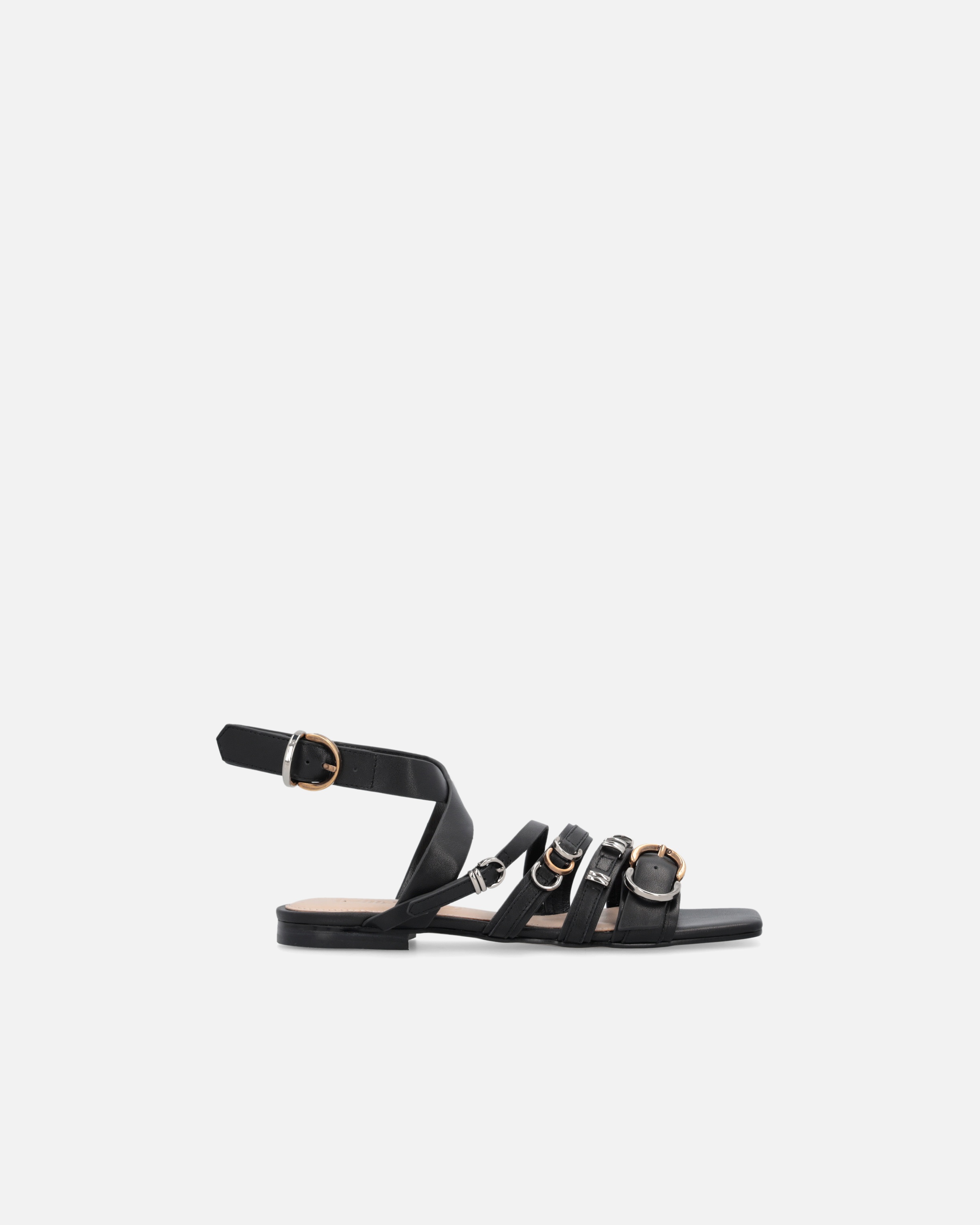 MARLI 08 - SANDAL − SD0317P001Z99 Women's flat sandals made of leather with an upper constructed from intertwined straps that wrap around the foot, creating a sophisticated and contemporary design. The straps are also customized with buckles and small metal rings in a mix of galvanic colors, to recall the ankle strap, adjustable with a double half-moon metal buckle. The leather insole has a light padding to make wearing more comfortable, while the tunit sole, a synthetic material with characteristics similar to leather, is completed by a 2cm flat heel. These sandals are an elegant and feminine model, to be worn all season long. COMPOSITION Lining: GOATSKIN 100% - Sole: GOATSKIN 100% - Sole: ELASTODIENE 100% RUBBER 100% - : CALF LEATHER 100% CALFSKIN LEATHER 100%