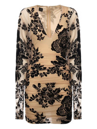 floral-pattern mini dress Highlights - Beige - Floral pattern - V-neck - Long sleeves - Fitted bodice Imported Composition Outer: Polyamide 85%, Elastane 15% Lining: Polyamide 90%, Elastane 10% Washing instructions Read Manufacturer Guidelines