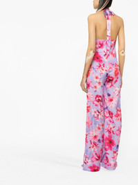floral-print satin jumpsuit This halterneck jumpsuit from PINKO is adorned with a bold floral print and is complete with a satin finish. Highlights - Lilac/pink - Satin finish - All-over floral print - Halterneck tie fastening - Sleeveless - Side zip fastening - Wide leg Made in Italy Composition Polyester 100% Washing instructions Machine Wash