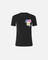 TEGOLINO T-SHIRT − 105702A2UDZ99 Short-sleeved slim-fit T-shirt with a rib-knit crew neck made from stretch cotton jersey. A floral print embellishes the front of the model on the left side, with the PINKO lettering logo standing out among the flower petals. A versatile piece that is easy to wear with a pair of jeans or layer under a jacket for a casual look. COMPOSITION 1° Outside Fabric: COTTON 94% ELASTANE 6% - 2° Outside Fabric: COTTON 97% ELASTANE 3%