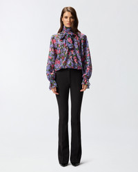 ANDERE BLOUSE − 106125A30ASJ1 Long-sleeved blouse in lightweight crepon with colourful stylised floral print and elasticated hem for a comfortable fit. Perfect for early-season days or to wear under a blazer, this blouse features ruffles at the end of the sleeves and a sash that ties into a delicate, elegant bow around the neck. Lightweight and with a fluid feel, this PINKO garment will give your daytime looks and more a carefree vibe. COMPOSITION Outside Fabric: POLYESTER 100%