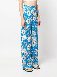 floral-print wide-leg trousers royal blue all-over floral print high waist elasticated waistband concealed side zip fastening wide leg Imported Composition Lining: Polyester 100% Outer: Polyester 100% SIZE & FIT Model measurements Height 5 ft 10 in(1.77 m) Bust/Chest 31.1 in(79 cm) Hips 34.64 in(88 cm) Waist 25.19 in(64 cm) FittingInformation This piece fits true to size. We recommend you get your regular size Designed to be fitted at the waist and hips, loose over the leg Made with a mid-weight non-stretch fabric
