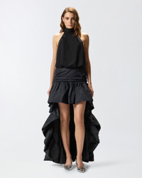 DONDOLO SKIRT − 105642Y3LEZ99 Taffeta skirt, which is shorter on the front and longer on the back. The asymmetrical cut trimmed by the flounces creates a dramatic effect, which is also accentuated by the slightly gathered fabric. The material is light and shiny and blends perfectly with the dynamic volume that distinguishes the garment. This elegant skirt provides a bold, feminine touch for your special occasions, in an outfit that won't go unnoticed. COMPOSITION Outside Fabric: POLYESTER 100% - Lining: POLYESTER 100%
