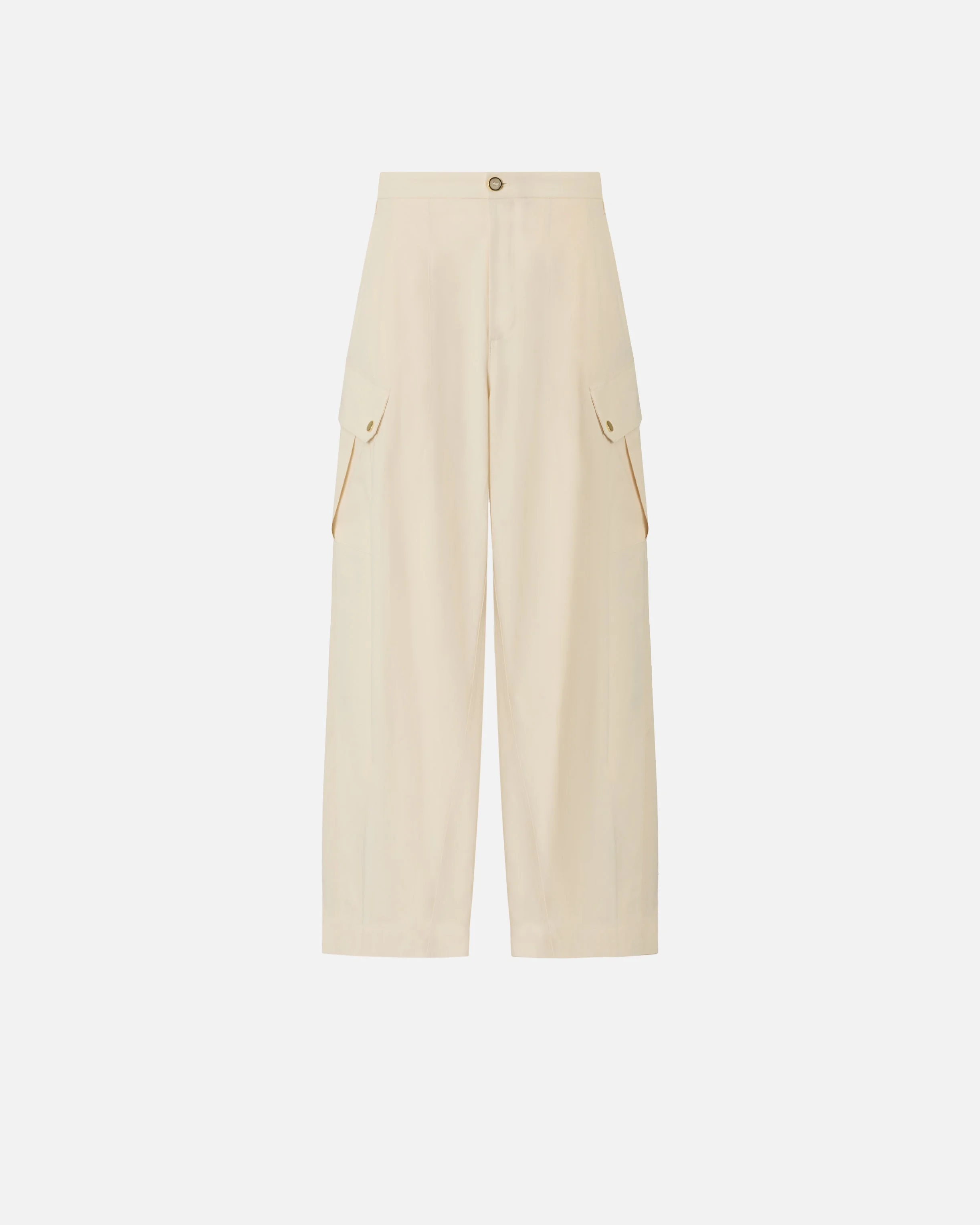 106278A2ER-C03 Trousers made from pure cotton twill with a ruffled yet flowing feel, an ideal fabric to follow the silhouette without constricting it. This loose-fitting garment features two side pockets, two back patch pockets and two pockets with flap and buttons down the leg, and is complete with a practical drawstring at the hem to allow you to customise the styling. This garment is lined for greater comfort when worn. Give a touch of lightness to your everyday outfits in the summer with these trousers with a versatile, feminine vibe. - ROSALIN TROUSERS COMPOSITION Outside Fabric: COTTON 100% - Lining: POLYESTER 100%