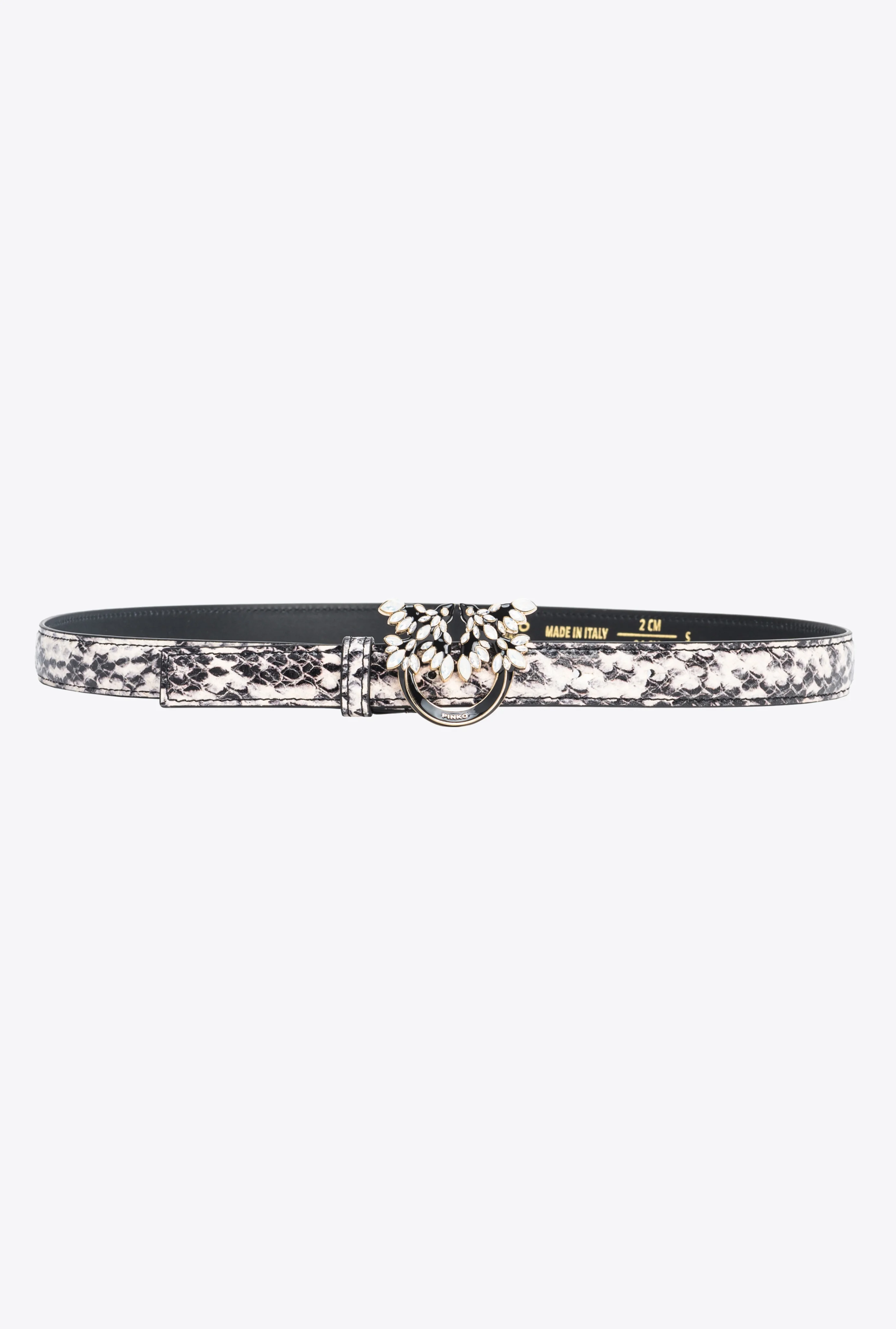 PINKO GALLERIA THIN 2CM REPTILE-PRINT BELT WITH LOVE BIRDS BUCKLE