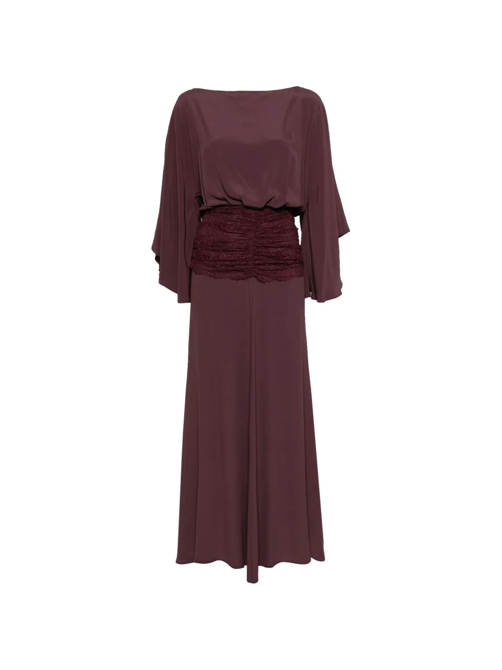 gathered maxi dress Highlights - Burgundy red - Boat neck - Long sleeves - Lace detail - Gathered detail Imported Composition Acetate 69%, Silk 31% Washing instructions Machine Wash