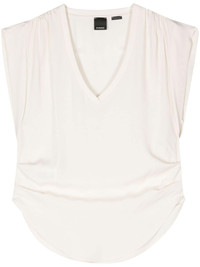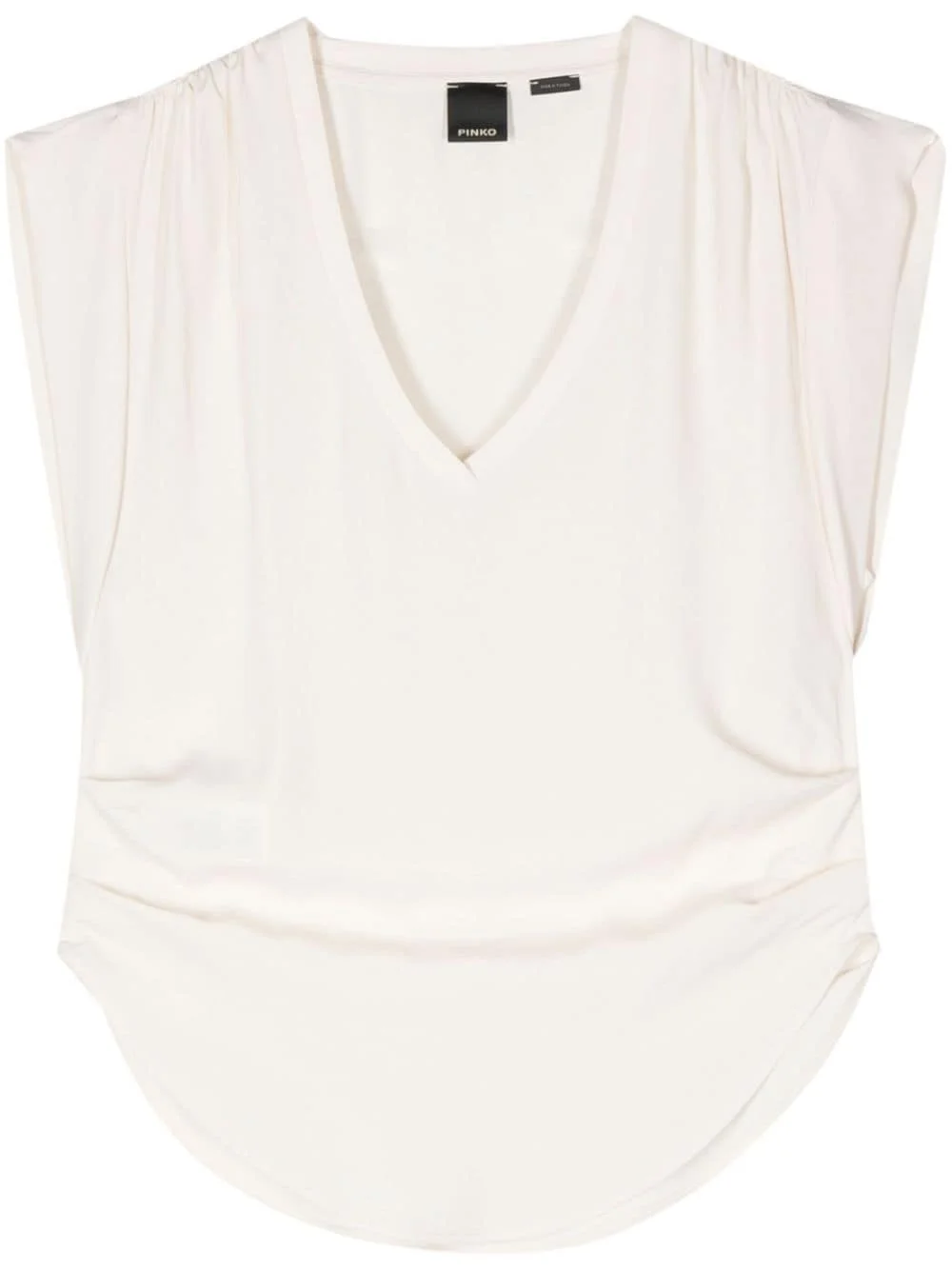 gathered sleeveless blouse Highlights - Cream white - Crepe de chine - V-neck - Sleeveless - Gathered detailing at the shoulders and sides - Tonal stitching - Curved hem Imported Composition Acetate 76%, Silk 24% Washing instructions Dry Clean Only