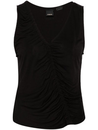 gathered sleeveless tank top Highlights - Black - Stretch-jersey - Gathered detailing - V-neck - Sleeveless - Curved hem Imported Composition Viscose 100% Washing instructions Machine Wash