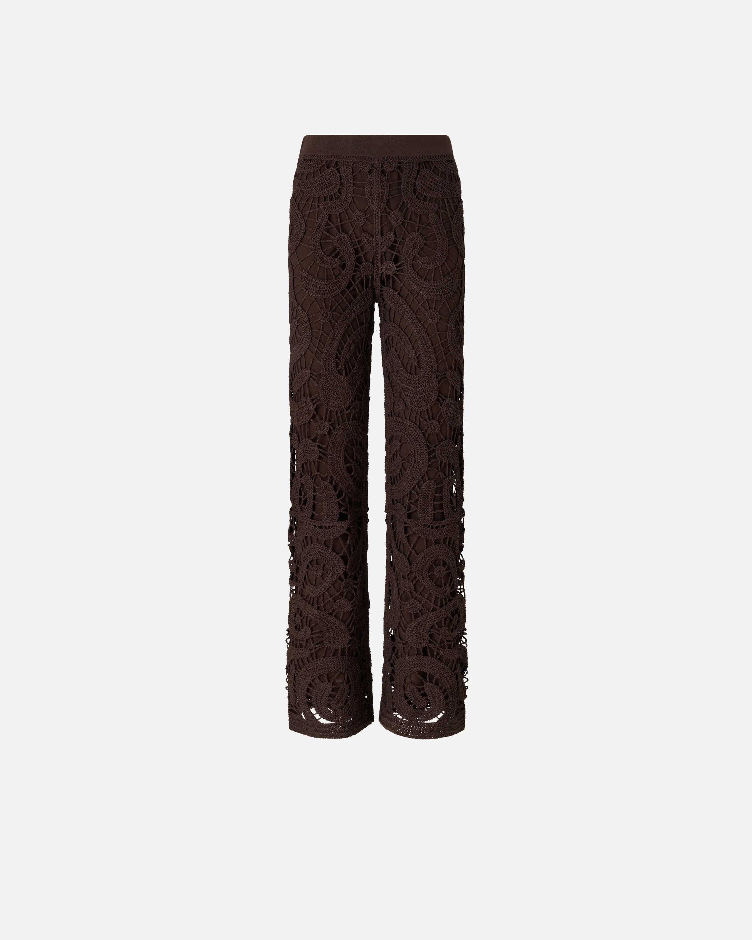 106362A354-M05 Straight-leg trousers with refined crochet detailing sporting an innovative geometric pattern that gives the design a dynamic edge and creates a sheer effect. Give your looks a unique touch with this modern, feminine garment. COMPOSITION 1st Outer Yarn: VISCOSE 63% POLYAMMIDE 37% POLYAMIDE 37% - 2nd Outer Yarn: POLYESTER 100% - Accessory lining: POLYESTER 95% ELASTANE 5% MEASURES W: 0.92 g