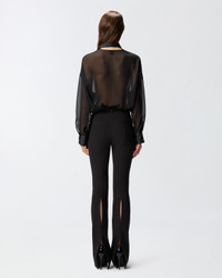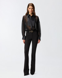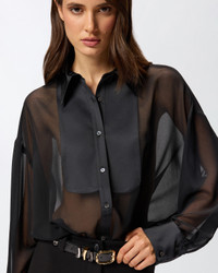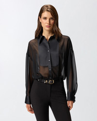 MARQUILLA SHIRT − 106141A309Z99 Women's shirt in lightweight georgette with a silky hand, relaxed line and dropped shoulder, embellished with a bib and cuffs in smooth satin that create a refined play of transparencies and glossy/matte; classic collar, front buttoning with tone-on-tone buttons, and straight bottom finished with clean topstitching so it can be worn both in and out of the pants; back yoke and long sleeves with adjustable cuffs complete a fluid and contemporary construction, perfect for day-to-night outfits; pair it with high-waisted tailored pants for an essential and sophisticated look. COMPOSITION 1° Outside Fabric: POLYESTER 94% ELASTANE 6% - 2° Outside Fabric: POLYESTER 100%