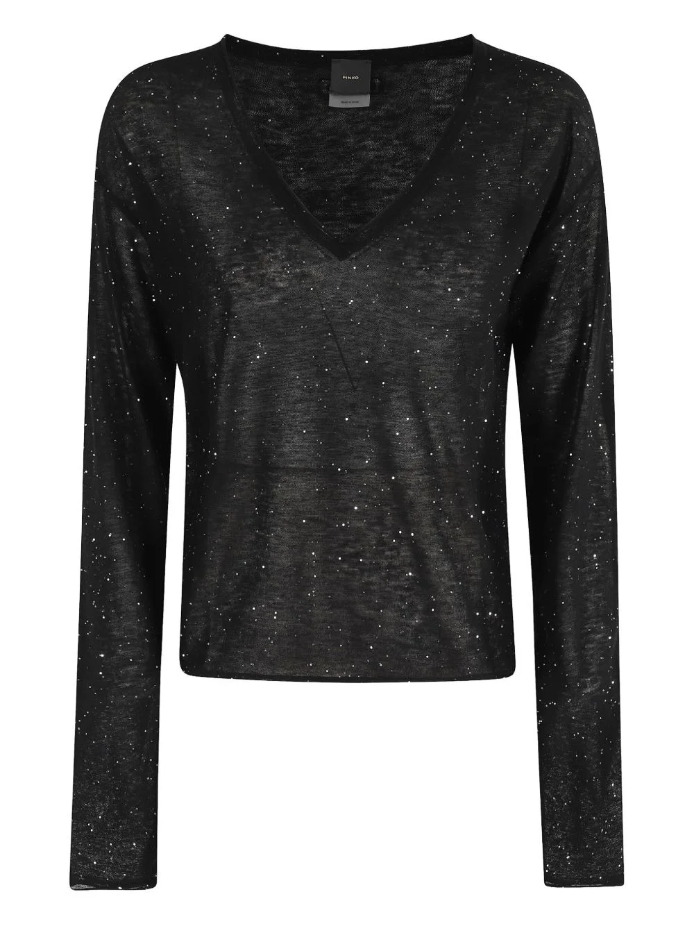 glitter V-neck sweater Highlights - Black - V-neck - Long sleeves - Glitter embellishment Imported Composition Fabric 100% Washing instructions Read Manufacturer Guidelines