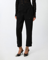 GLOBO TROUSERS − 102042A215Z99 Cargo trousers in garment dyed stretch cotton satin. Regular waist with maxi belt loops, French pockets on the front, welt pockets on the back and maxi utility-style pocket on one of the two sides. Relaxed line leg completed with buttoned frog at the bottom. Zip and button fastening. COMPOSITION Outside Fabric: COTTON 97% ELASTANE 3% - Lining: COTTON 100%