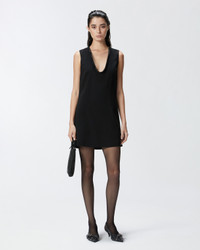 GORDES DRESS − 103969A23VZ99 Sleeveless mini sheath dress in technical cady with plunging neckline embellished with matching rhinestone appliques along the edge. Straight-cut shape, slightly flared hem and fabric lining. Fastened with invisible zip and small hook at the back. COMPOSITION Outside Fabric: VISCOSE 97% ELASTANE 3% - Lining: ACETATE 67% POLYESTER 33% - Material: Glass 100% - Padding: POLYESTER 100%