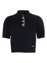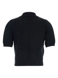 short-sleeve polo top Highlights - Black - Short sleeves - Polo collar - Front button placket - Ribbed hem Imported Composition Fabric 100% Washing instructions Read Manufacturer Guidelines