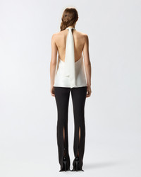 BRISCOLA TOP − 105614A2RAZ04 Loose-fit sleeveless top with a halterneck embellished with metal spheres. A touch of sensuality is provided by the bared back, which is caressed by the sash tie on the neck that falls free, creating movement. The shiny satin gives the piece unique shimmer and a particularly soft hand. Wear this top for a fluid, slinky effect that elegantly enhances the lines with sophistication and the feminine silhouette. COMPOSITION Outside Fabric: ACETATE 91% POLYESTER 9% - Lining: POLYESTER 100% - Accessory 1: POLYAMMIDE 100% POLYAMIDE 100% - Accessory 2: Metal 100%
