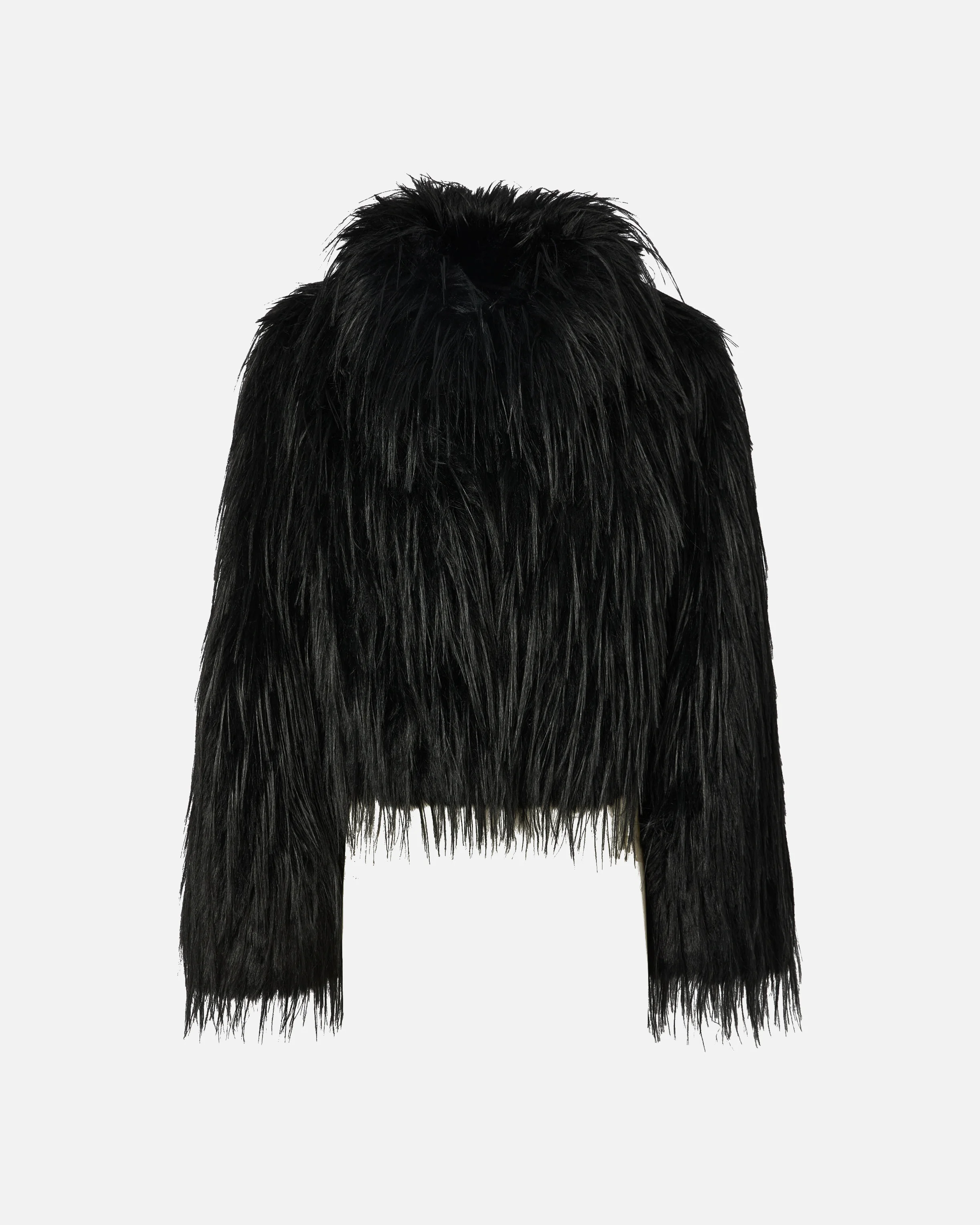 AMPARO CABAN − 106045A2ZOZ99 Long-sleeved pea jacket in soft fur-effect Aspen fabric with wide, enveloping collar. Ready to give you a truly star-worthy look, this piece is complete with concealed front fastening and is lined to provide comfort when worn. COMPOSITION Outside Fabric: POLYESTER 100% - Lining: POLYESTER 100%