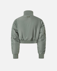 BAVETTE BOMBER − 105339A2OIV30 Padded bomber jacket with a new, more rounded volume, featuring large front gusset pockets with zip and a high collar, hem and cuffs in a rib knit. This piece is made from 100% technical nylon satin with a shiny look and a firm, dry hand that goes well with streetwears. To make the design even more special, we find the seams along the sleeves, which gather the fabric and transform it into a dynamic decorative design. The back is finished with an embroidered Love Birds logo patch: a detail customised in pure PINKO style. Two-way metal zip fastening on the front. COMPOSITION Outside Fabric: POLYAMMIDE 100% POLYAMIDE 100% - Accessory Yarn: POLYESTER 98% ELASTANE 2% - Lining: POLYESTER 100% - Padding: POLYESTER 100%