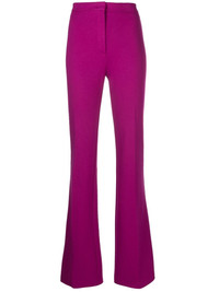 flared high-rise trousers Highlights - Fuchsia pink - Wide leg - Pressed crease - High waist - Concealed front fastening Made in Italy Composition Outer: Viscose 67%, Polyamide 28%, Elastane 5% Lining: Acetate 68%, Polyester 32% SIZE & FIT Model measurements Height 5 ft 9 in(1.76 m) Bust/Chest 33.07 in(84 cm) Hips 34.64 in(88 cm) Waist 25.59 in(65 cm) FittingInformation Designed with a bootcut leg, these trousers allow for a close fit at the waist and with an unrestricted, comfortable fit and additional room at the calves Made from a midweight stretch fabric, this piece offers elasticity and flexibility when worn This piece fits true to size – take your usual size