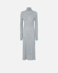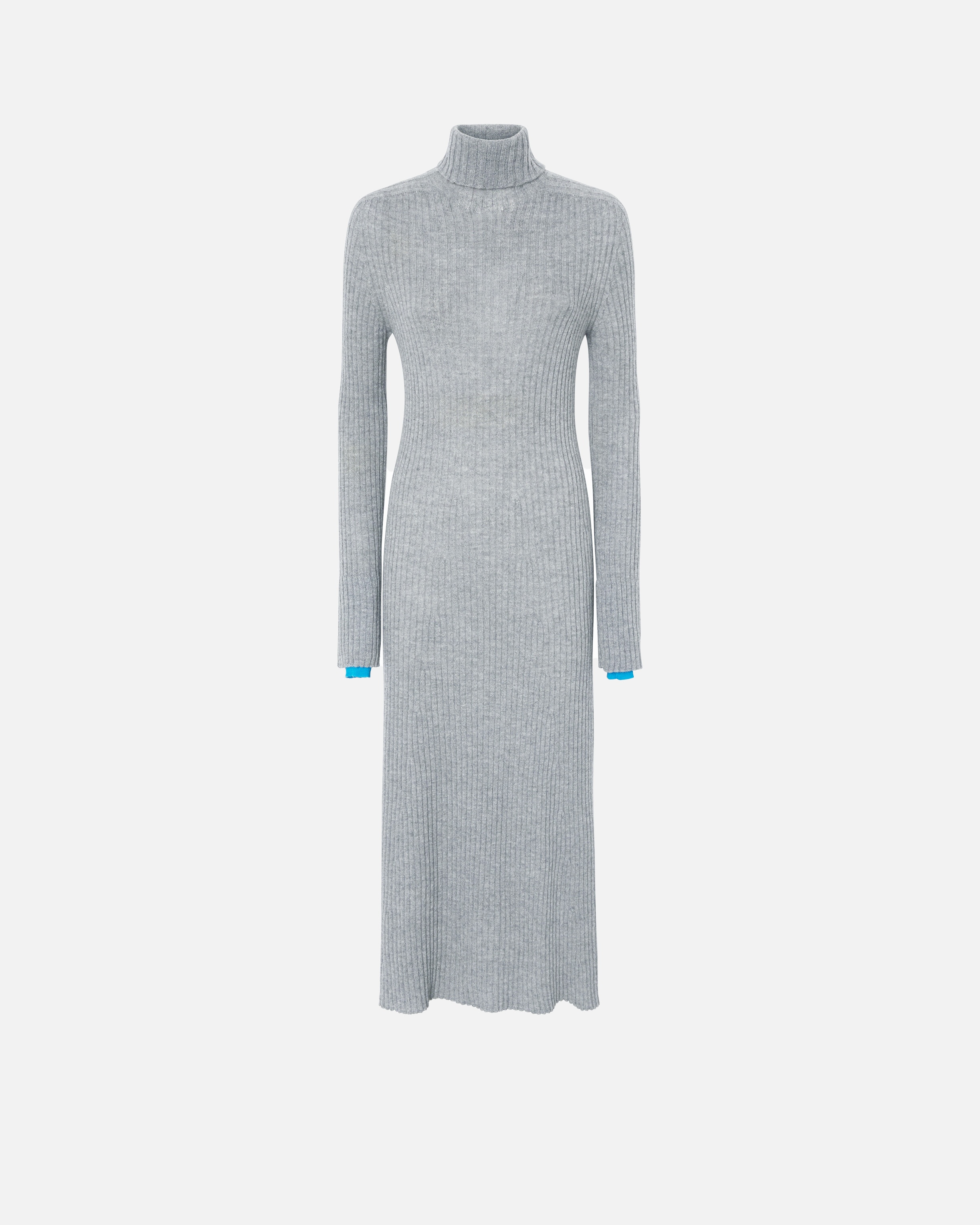 HIGHLANDER DRESS − 104470A278I1F Women's long dress in soft, ribbed knit wool- and cashmere-blend fabric. This slim-fitting piece with high neck and long sleeves features a slightly flared skirt that flows elegantly down the sides, accentuating the figure in a very feminine way. The dress is comfortable and original, partly due to the cuffs customised with contrasting edging and a logo-branded label. COMPOSITION Outside Fabric: WOOL 90% CASHMERE 10%