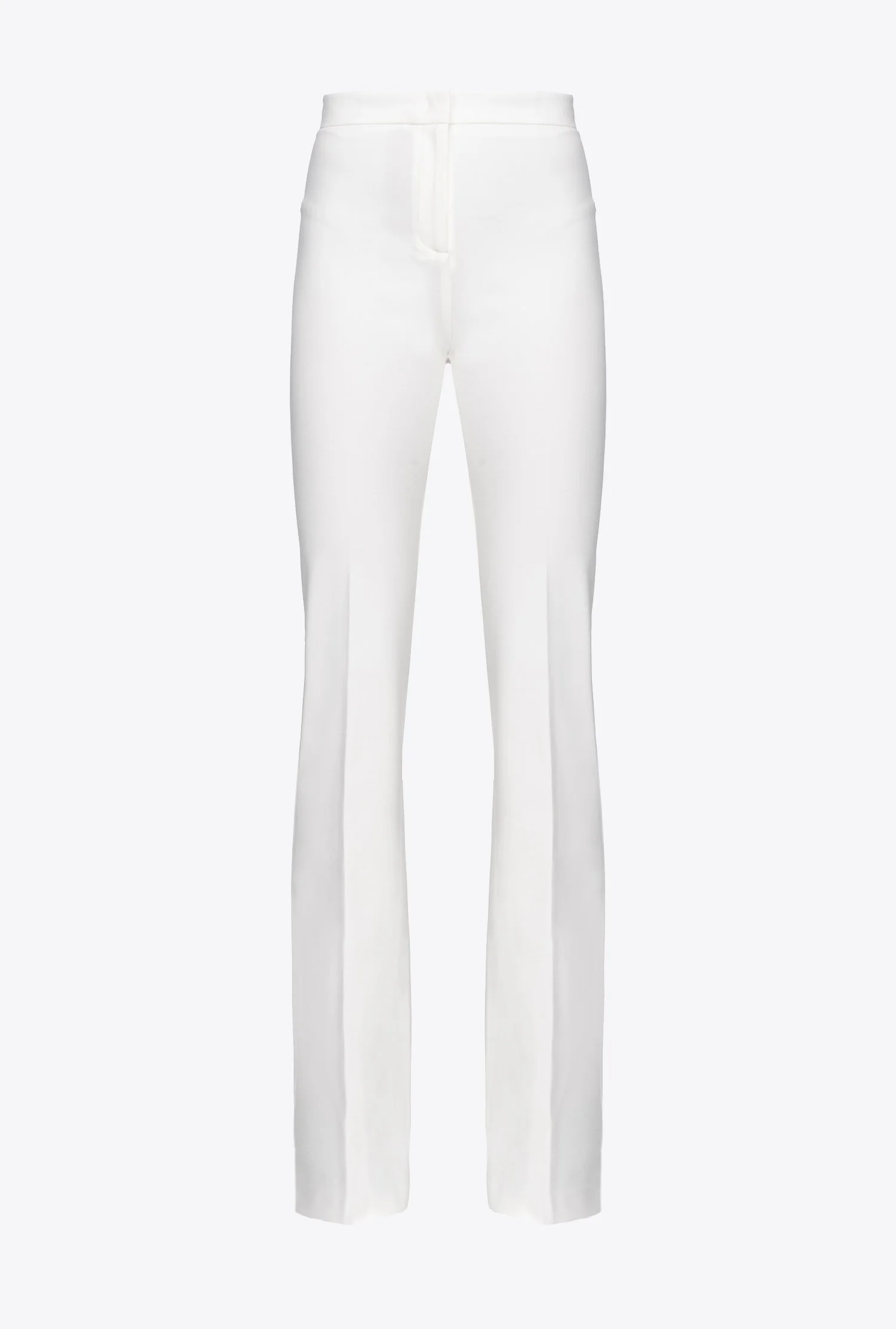 Flare-and-fit trousers in full Milano-knit stretch viscose fabric. High-waisted with a flared leg featuring a central pleat. Fastened with zip and small hook. COMPOSITION Outside Fabric: VISCOSE 67% POLYAMMIDE 28% POLYAMIDE 28% ELASTANE 5% - Lining: ACETATE 67% POLYESTER 33%