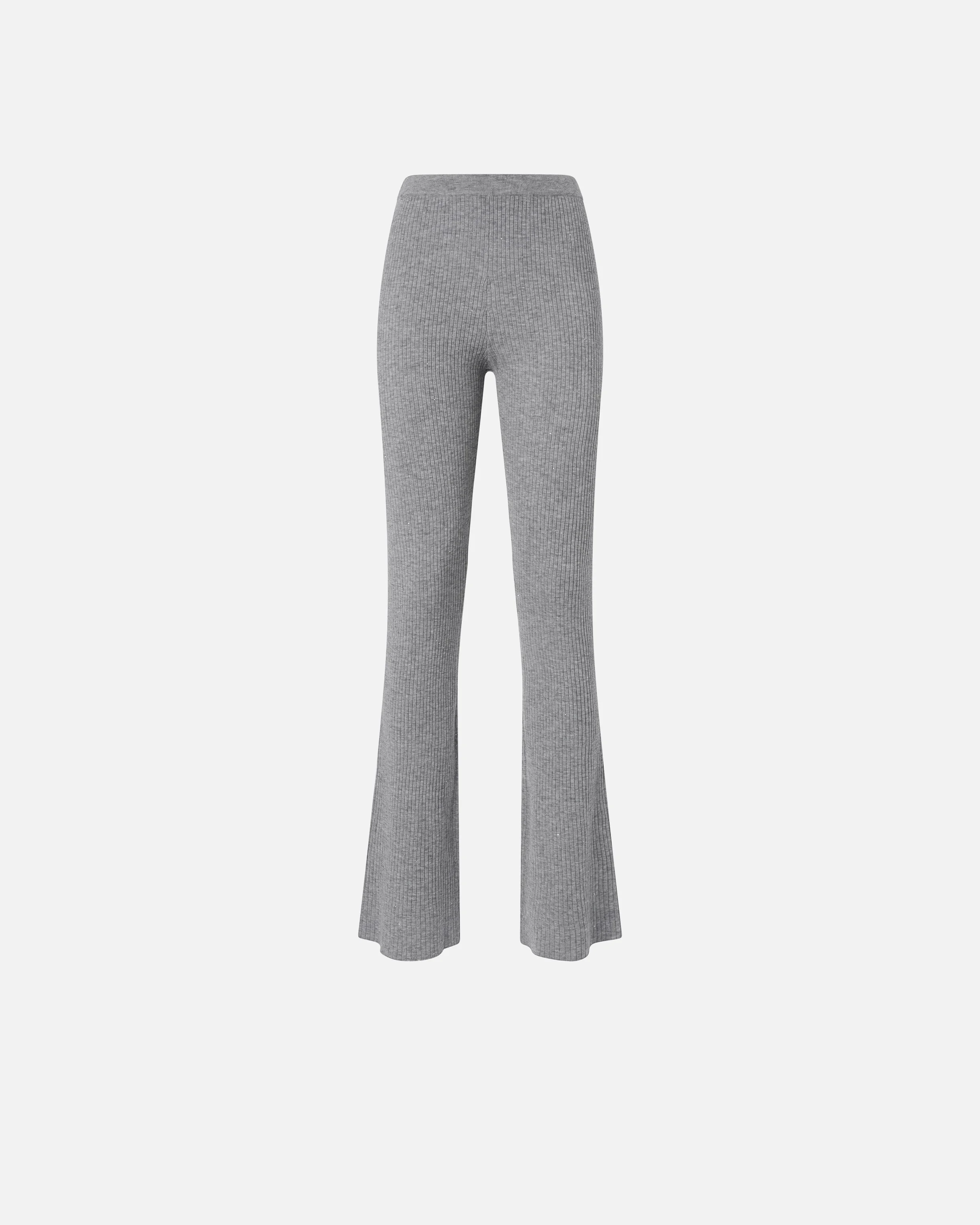 IBIZA TROUSERS − 105880A2PMI42 Long soft knit trousers with a vertical rib knit and a high waist. This ultra-fine knit piece is given some shimmer by the delicate micro-sequins that cover the surface and is completed by the flared cut on the hem. The piece has undergone finishing tests to minimise the possible formation of pilling, ensuring greater fabric softness and durability. The perfect choice for a comfortable look that does not compromise on elegance. COMPOSITION Outer Yarn: WOOL 68% POLYAMMIDE 30% POLYAMIDE 30% POLYESTER 2%