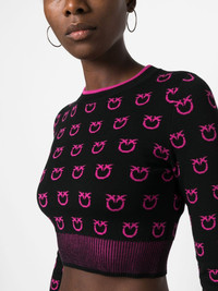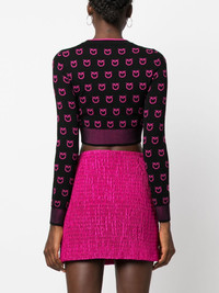 intarsia-knit cropped jumper Highlights - Fuchsia pink/jet black - Knitted construction - Intarsia-knit logo - Round neck - Long sleeves - Ribbed cuffs and hem - Cropped Imported Composition Viscose 72%, Polyester 28% SIZE & FIT Model measurements Height 5 ft 10 in(1.78 m) Bust/Chest 31.49 in(80 cm) Hips 37 in(94 cm) Waist 23.62 in(60 cm) FittingInformation Designed for a close fit throughout Made with a midweight knit, this piece offers some stretch This piece fits close in all sizes – take your usual size Washing instructions Hand Wash