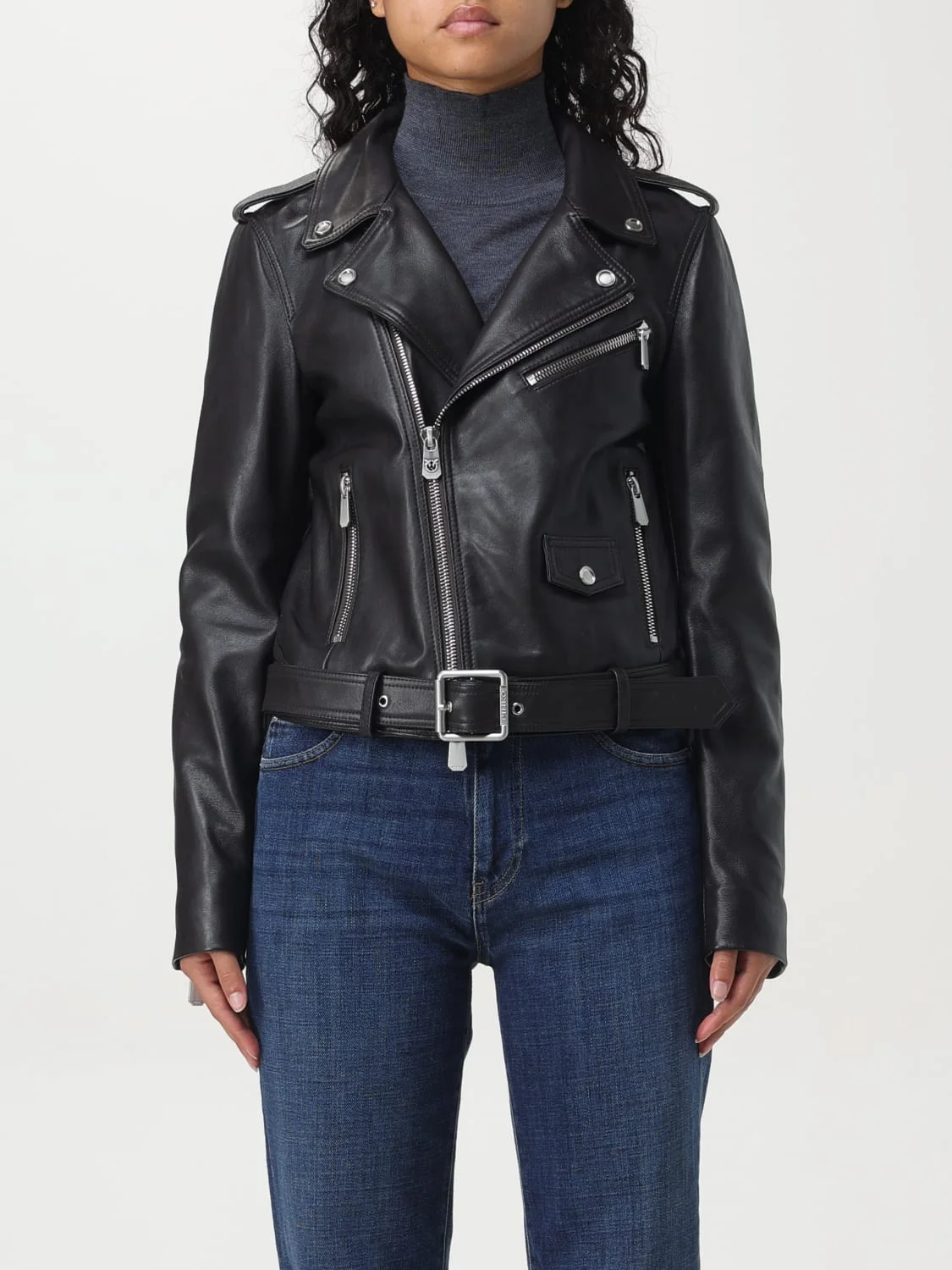 DESCRIPTION - Style: Rock - Model: Biker - Sleeves: Long - Closure: With zip - Pockets: With zip - Waist: With belt - Shoulders: With patches - Neck: Biker - Length: Short jackets - Materials: Leather - Pattern: Plain-colored DETAILS AND CARE Composition PEL - Pelle: 100%HF - FOD - Fodera: 100 SIZE AND FIT Sizes not available Size and fit Slim fit Designer code: 103897A21L M04 Giglio Code: 412292 Designer: Pinko Collection: Pinko Woman Category: Clothing Pinko