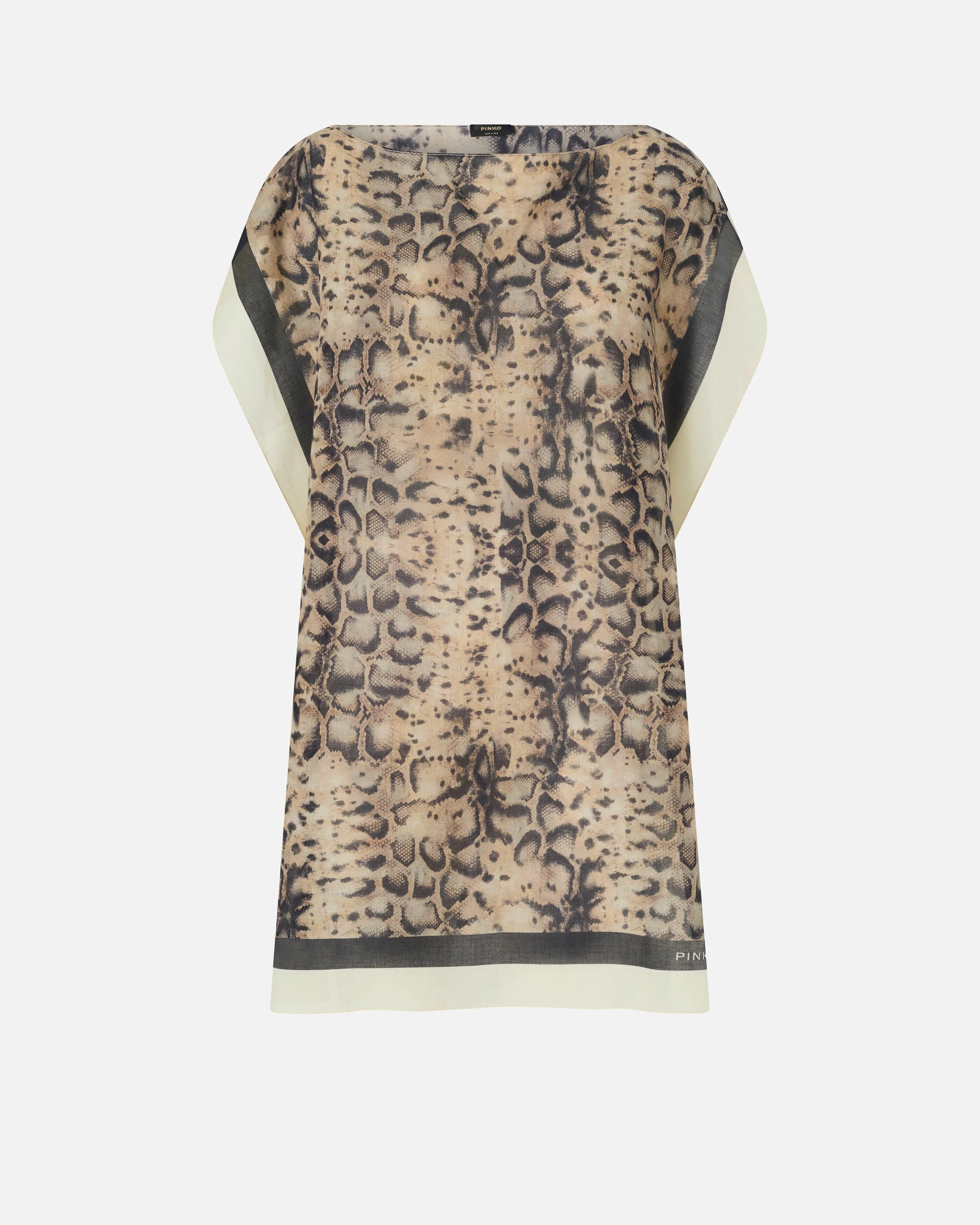 106691A39G-CZ5 Short-sleeved kaftan with boat neck, made from soft, durable pure cotton canvas. This model features an eye-catching all-over snake print with contrasting double-striped edges, and is complete with the iconic PINKO logo lettering at the bottom. Pair it with the matching pareo shorts for a magnetic feminine look to flaunt at the beach or by the pool. COMPOSITION Outside Fabric: COTTON 100% MEASURES W: 0.1 g H: 0.01 cm W: 69.0 cm L: 80.0 cm