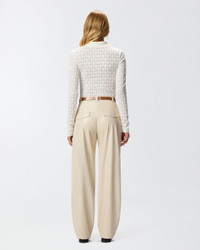 YOANA BODYSUIT − 105977A2YIZ06 Long-sleeved knit bodysuit in warm, enveloping lace. This garment is inspired by two different designs: a polo shirt with collar and button placket at the top, and a classic bodysuit at the bottom. The semi-sheer lace, punctuated by vertical ribbing, combines the two styles in a sophisticated way. If you're after the perfect piece to complete your casual-chic outfits, look no further! COMPOSITION 1° Outside Fabric: POLYAMIDE 90% POLYAMMIDE 90% ELASTANE 10% - 2° Outside Fabric: POLYAMIDE 85% POLYAMMIDE 85% ELASTANE 15% - Accessory Yarn: WOOL 100%