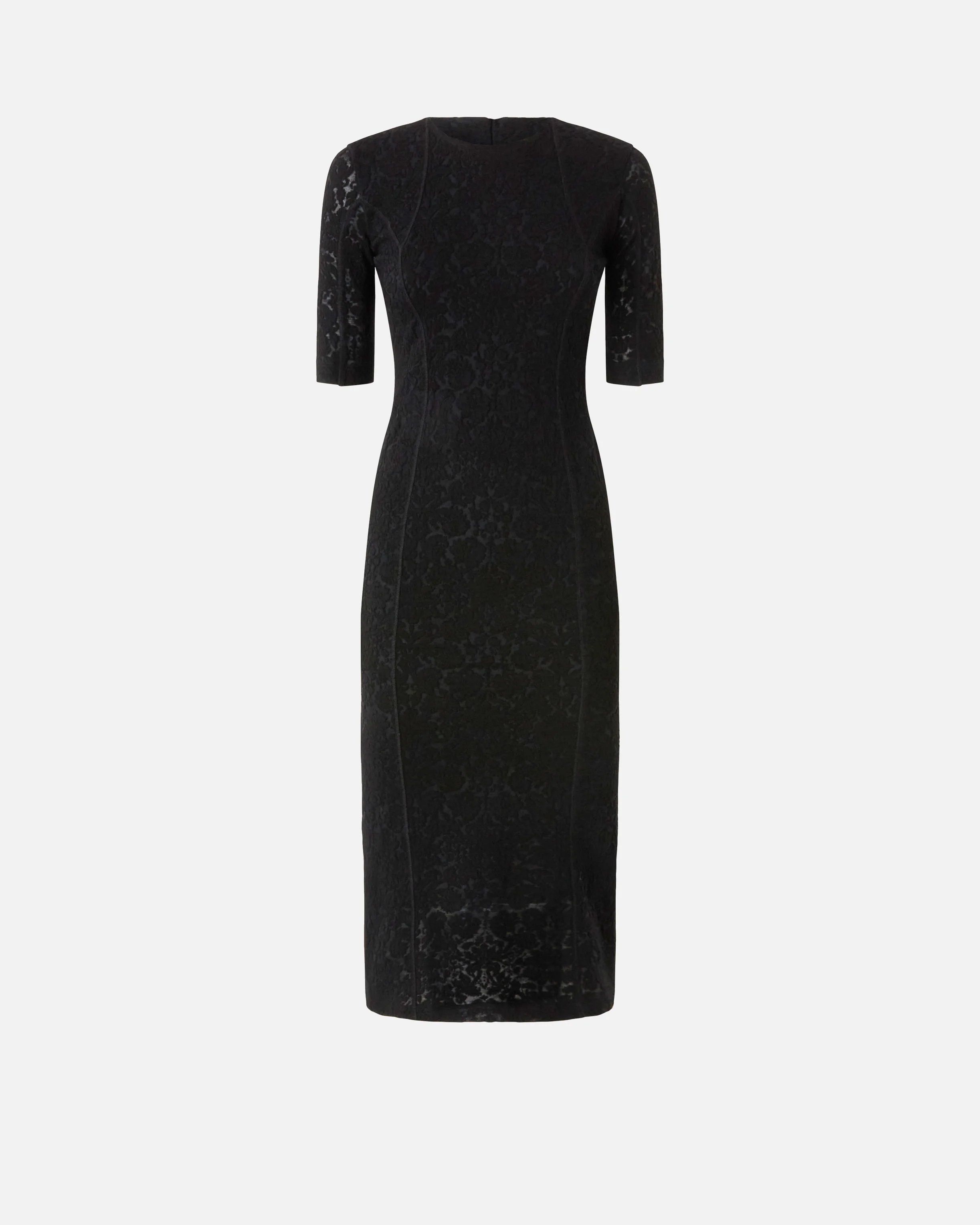 ARAME DRESS − 105653A2TWZ99 Lined bodycon midi dress with a round-neck and elbow-length sleeves. Perfect for adding a touch of sensuality to cold-season looks, this garment is made from a distinctive wool-blend jacquard knit fabric with an embossed floral motif with a refined lace effect. The dress is finished with contrasting piping on the body and sleeves. Invisible zip fastening on the back. COMPOSITION Outside Fabric: WOOL 76% POLYAMMIDE 24% POLYAMIDE 24% - Lining: POLYAMIDE 90% POLYAMMIDE 90% ELASTANE 10%