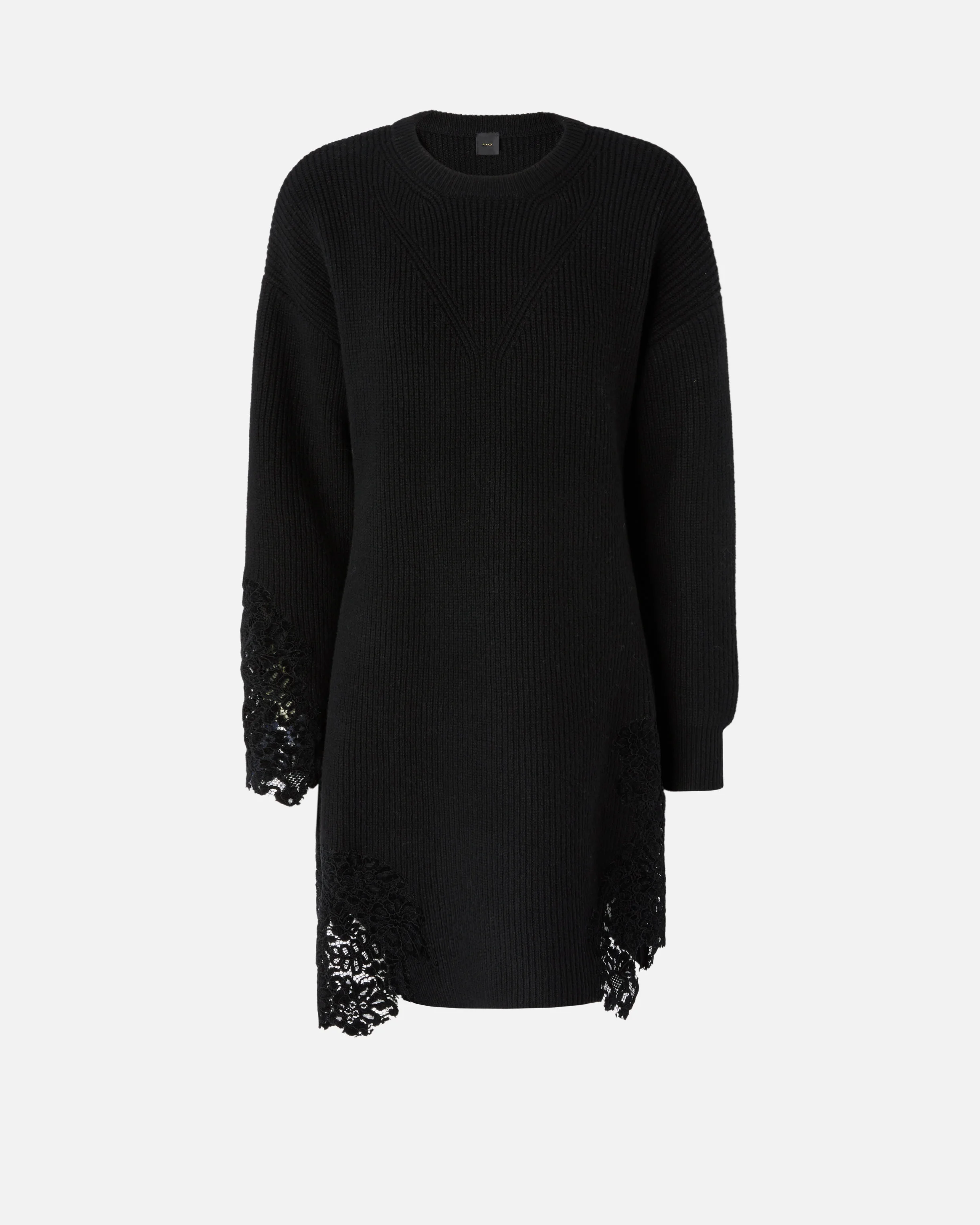 VALLEDAOSTA DRESS − 105504A2R1Z99 Short dress in rib-knit wool-blend fabric: a yarn that offers a perfect balance between comfort and softness. The detail that embellishes the design is the hand-worked flocked lace inlay on one sleeve and on the hem. The piece has undergone finishing tests to minimise the possible formation of pilling, ensuring greater fabric softness and durability. The final touch is given by the tone-on-tone label with PINKO lettering logo behind the neck. Add this design to your wardrobe to give your winter outfits a twist. COMPOSITION Outer Yarn: WOOL 75% POLYAMMIDE 24% POLYAMIDE 24% ELASTANE 1% - : POLYESTER 58% POLYAMMIDE 21% POLYAMIDE 21% COTTON 15% VISCOSE 6%