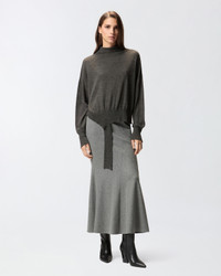 TOSCANA KNITWEAR − 105841A2TOK07 Long-sleeved polo-neck sweater made from a super-soft alpaca wool blend, a Made in Italy yarn able to offer a soft feel to the touch and to the wearer. This garment features a wrap silhouette on the front, to be tied in a heart-warmer style, which creates a refined draped effect. The neck, hem and cuffs are ribbed, while the final touch is given by the brand’s tone-on-tone label on the back of the neck. The piece has undergone finishing tests to minimise the possible formation of pilling, ensuring greater fabric softness and durability. COMPOSITION Outer Yarn: POLYAMMIDE 50% POLYAMIDE 50% ALPACA 40% WOOL 10%