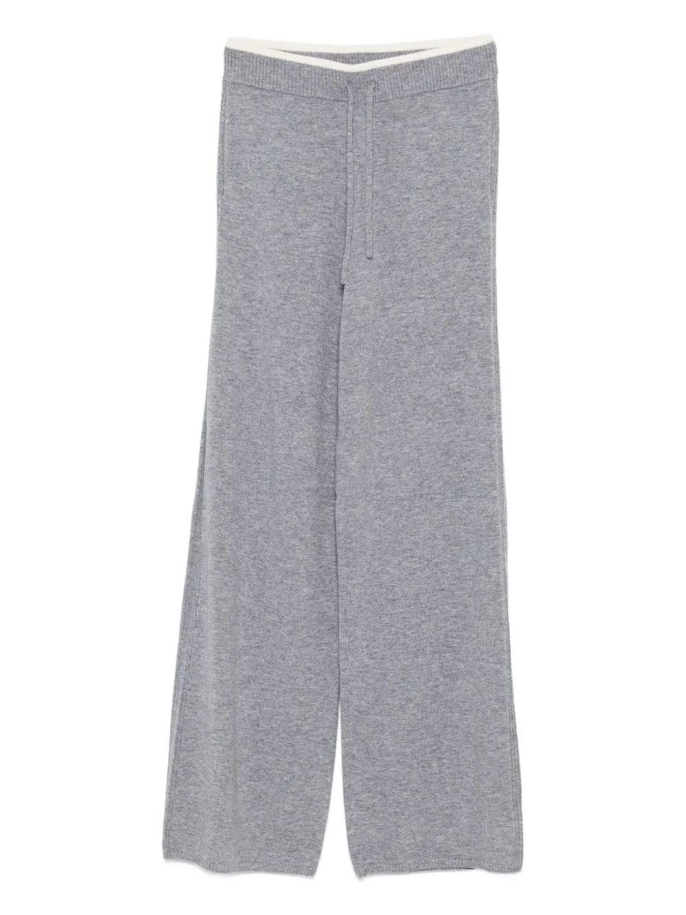 knitted drawstring trousers Highlights - Grey - Drawstring fastening - Wide leg - Ribbed waistband - Straight hem Imported Composition Wool 90%, Cashmere 10% SIZE & FIT Model measurements Height 5 ft 11 in(1.8 m) Bust/Chest 31.49 in(80 cm) Hips 36.61 in(93 cm) Waist 24.4 in(62 cm) Washing instructions Read Manufacturer Guidelines