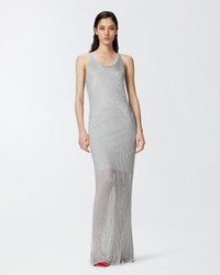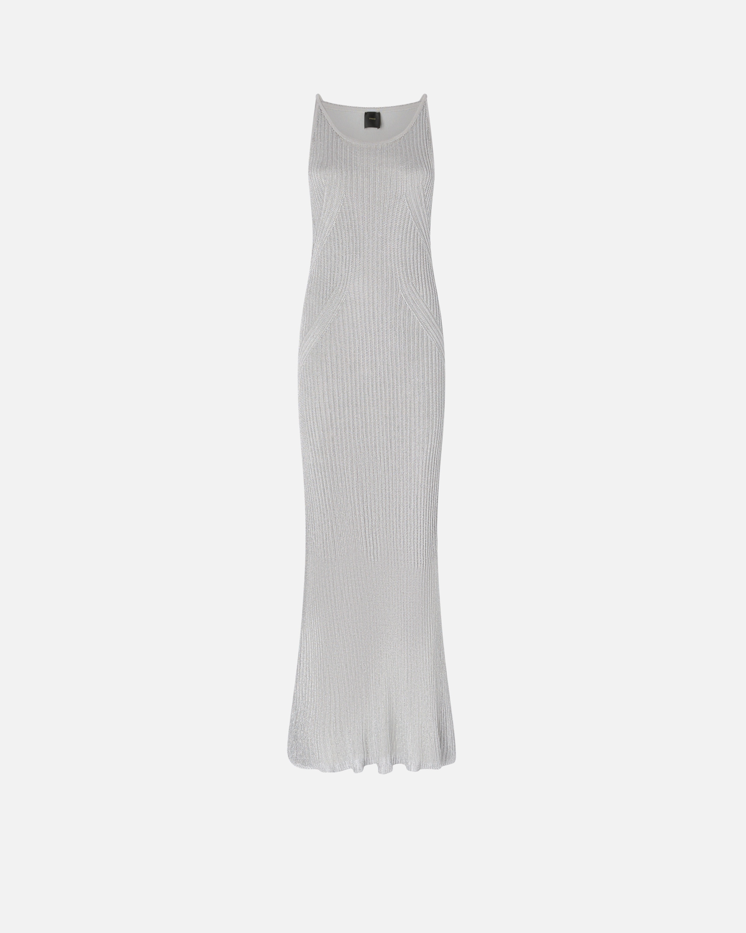 NELSON DRESS ā 105146A2LOI12 Women's sleeveless long dress made of metallic viscose blend knit with a particular ribbed pattern. The knitted dress is completed by a round neckline at the front, with a racer construction on the back, where a small label with the PINKO logo is embroidered. This dress has a snug, slipped fit down the hips and comes complete with a matching soft, thin knit slip that goes mid-thigh length to soften the transparency of the texture. To highlight the elegance and uniqueness of this garment, combine it with a pair of pointed-toe shoes in a contrasting color to be the protagonist on any occasion. COMPOSITION 1st Outer Yarn: VISCOSE 72% Metallised Fibre 28% Metallic fibre 28% - 2nd Outer Yarn: VISCOSE 64% POLYAMIDE 36% POLYAMMIDE 36% - Outer Yarn: VISCOSE 64% POLYAMIDE 36% POLYAMMIDE 36%
