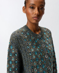 KNITTED MULINE CARDIGAN WITH JEWEL APPLICATIONS