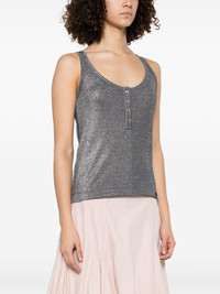 knitted tank top Highlights - Steel blue - Short front button fastening - Rounded collar - Sleeveless - Lurex detailing Imported Composition Nylon 100% SIZE & FIT Model measurements Height 5 ft 10 in(1.79 m) Bust/Chest 31.88 in(81 cm) Hips 35.43 in(90 cm) Waist 23.62 in(60 cm) FittingInformation Designed for a slim fit that sits just away from the body offering a close yet comfortable fit Made from a midweight non-stretch fabric, this piece offers minimal elasticity when worn Washing instructions Dry Clean Only
