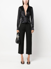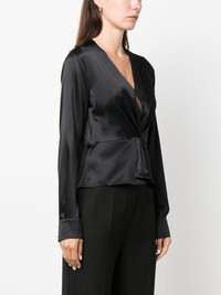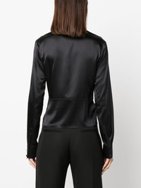 knot-detail silk blouse Highlights - Black - Stretch-silk - Satin finish - Knot detailing - V-neck - Long sleeves - Straight hem Imported Composition Silk 94%, Elastane 6% SIZE & FIT Model measurements Height 5 ft 10 in(1.78 m) Bust/Chest 33.85 in(86 cm) Hips 35.82 in(91 cm) Waist 22.44 in(57 cm) FittingInformation Designed for a slim fit that sits just away from the body offering a close yet comfortable fit Made from a lightweight stretch fabric, this piece offers elasticity and flexibility when worn This piece fits true to size – take your usual size