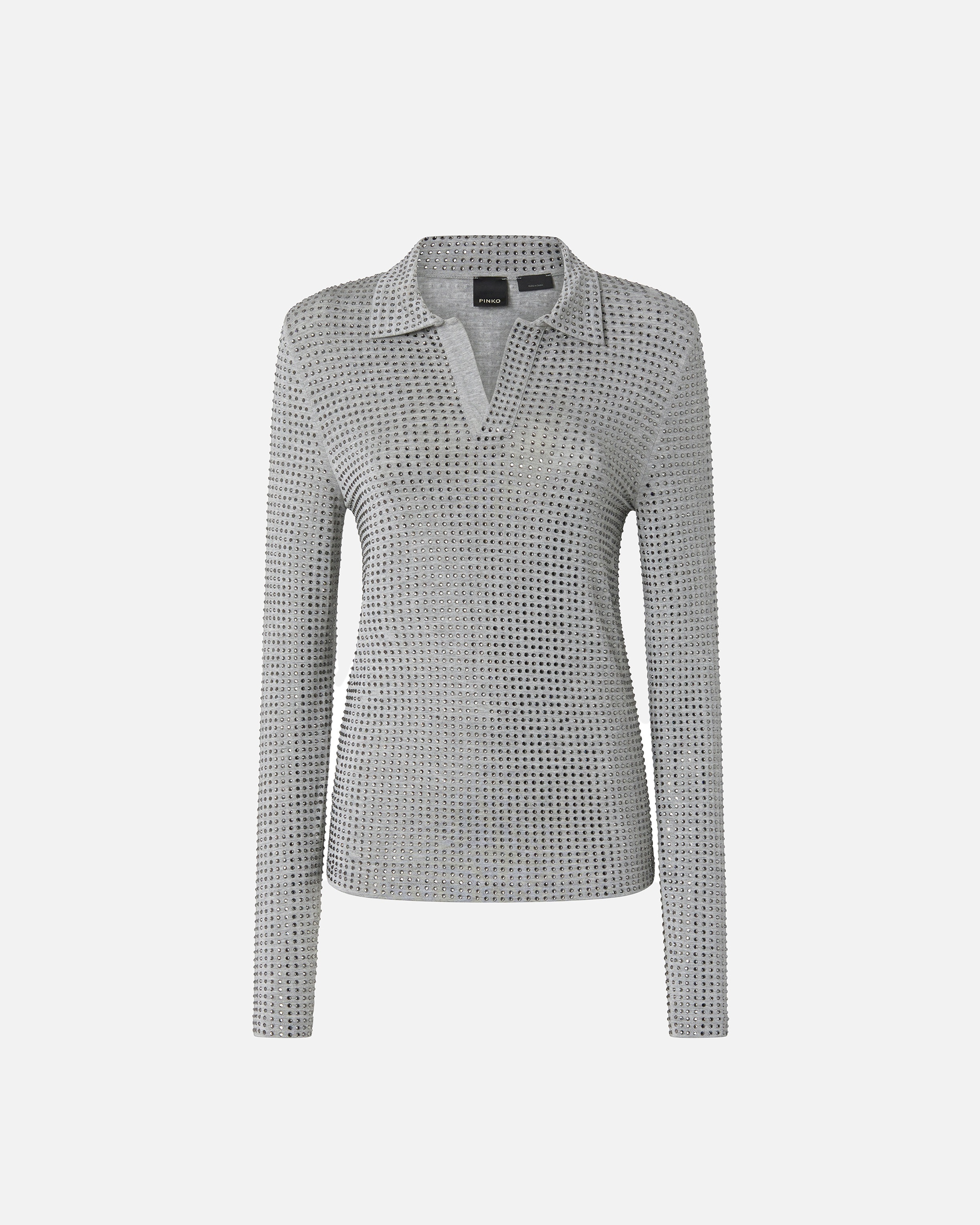 LONG-SLEEVED JERSEY POLO WITH RHINESTONES