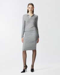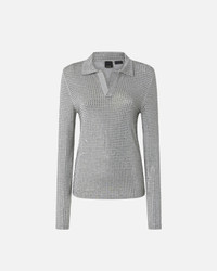 KOOSER POLO − 104452A2B4I42 Women's long-sleeved sweater in stretch viscose-blend jersey with rhinestone embroidery all over the front and back. Paired with its matching pencil skirt, this slim-fitting polo shirt with polo collar forms a sparkling, striking head-to-toe look. COMPOSITION Outside Fabric: VISCOSE 92% ELASTANE 8% - Accessory: Glass 100%