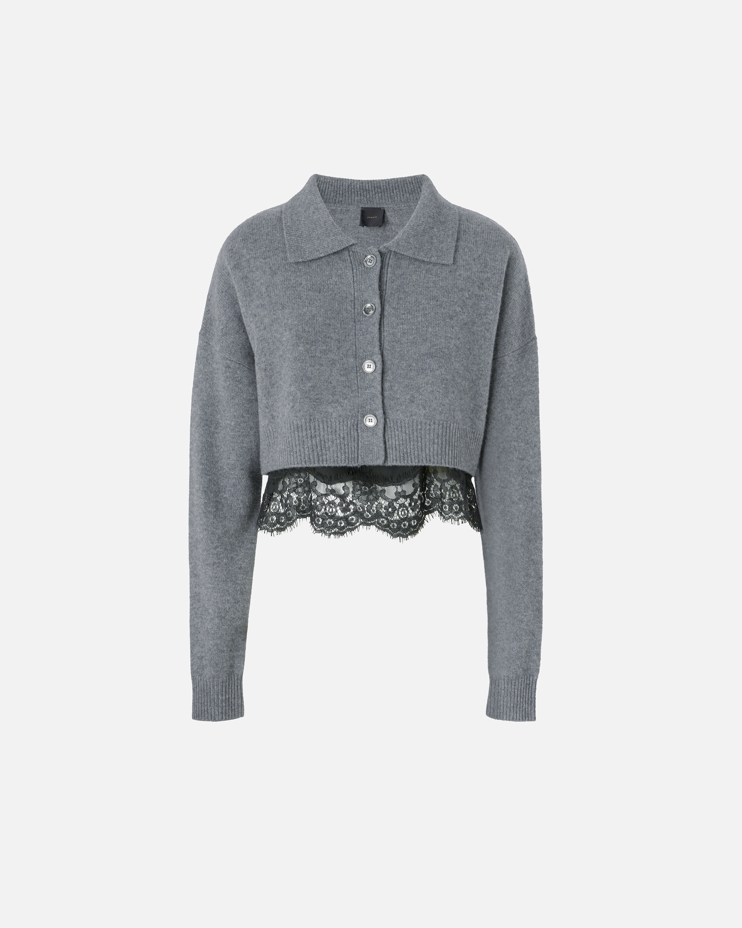 TIPICO SWEATER − 103918A226IZ9 Wool and cashmere-blend knit cropped cardigan complemented by shiny viscose satin top with lace trimmed hem. The cropped cut of the cardigan is made so that the feminine lace outline of the top is visible under the cardigan. The boxy shape of the cardigan is complemented by a shirt collar, long sleeves with ribbed edging. The cardigan is the perfect garment to complete your everyday looks with a feminine touch without sacrificing the comfort of a knitted garment. Front button fastening. COMPOSITION Outside Fabric: WOOL 90% CASHMERE 10% - Lining: VISCOSE 100% - : POLYAMIDE 43% POLYAMMIDE 43% COTTON 35% VISCOSE 22%