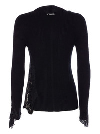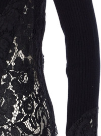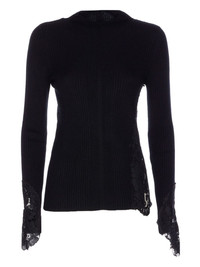 lace-insert ribbed sweater Highlights - Black - Ribbed knit - Lace detail - High neck - Long sleeves - Patch logo Imported Composition Cotton 70%, Nylon 30% Washing instructions Read Manufacturer Guidelines