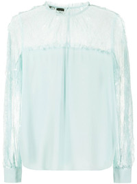 lace-panel blouse Delicate in colour and composition, this mint-green PINKO blouse is crafted from a silk blend and spliced with semi-sheer floral lace at the neck and sleeves. Imported Composition Acetate 70%, Silk 30% SIZE & FIT Model measurements Height 5 ft 10 in(1.79 m) Bust/Chest 31.49 in(80 cm) Hips 35.03 in(89 cm) Waist 23.62 in(60 cm) FittingInformation This piece fits true to size. We recommend you get your regular size Cut for a loose fit Made with a lightweight non-stretch fabric Washing instructions Hand Wash