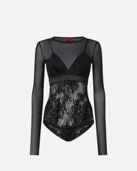 TULLE AND LACE KNIT BODYSUIT