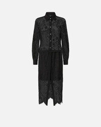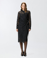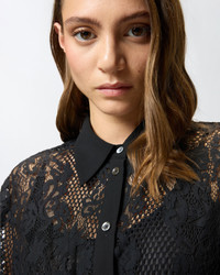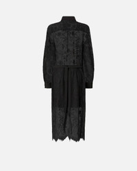 105644A2QB-Z99 Long shirt dress with fitted waist, shirt collar and long balloon sleeves with buttons at the end. Finished with plain-coloured fabric edging, this piece is made from refined rebrode lace that allows you to experiment with sheer effects and delicately drops with fringing at the bottom. The dress is complete with a small matching-fabric belt to tie at the waist, allowing you to personalise the fit and style. COMPOSITION 1° Outside Fabric: COTTON 54% POLYAMIDE 46% POLYAMMIDE 46% - 2° Outside Fabric: POLYESTER 100% - Lining: POLYESTER 100% MEASURES W: 0.45 g
