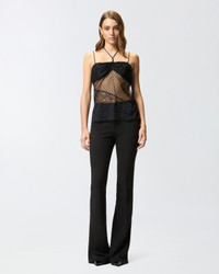 BIGLIE TOP − 105598A2T5Z99 Lace top with slim straps and an additional neck tie with a special patchwork effect that combines different patterns. The design is made with three distinct lace motifs, each chosen to create visual contrast, and is especially illuminated by the sequinned embroidery. The fabric greatly improves the fit of the garment, while ensuring comfort and a perfect fit to the figure. In addition, the strategic draped detailing that wraps around the body creates sensual sheerness and emphasises curves with a dynamic and fluid effect. COMPOSITION 1° Outside Fabric: POLYAMMIDE 89% POLYAMIDE 89% ELASTANE 11% - 2° Outside Fabric: POLYAMMIDE 100% POLYAMIDE 100% - 3° Outside Fabric: POLYAMMIDE 100% POLYAMIDE 100% - Lining: POLYAMIDE 90% POLYAMMIDE 90% ELASTANE 10%