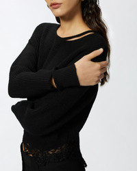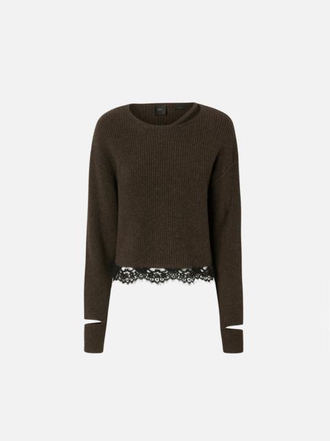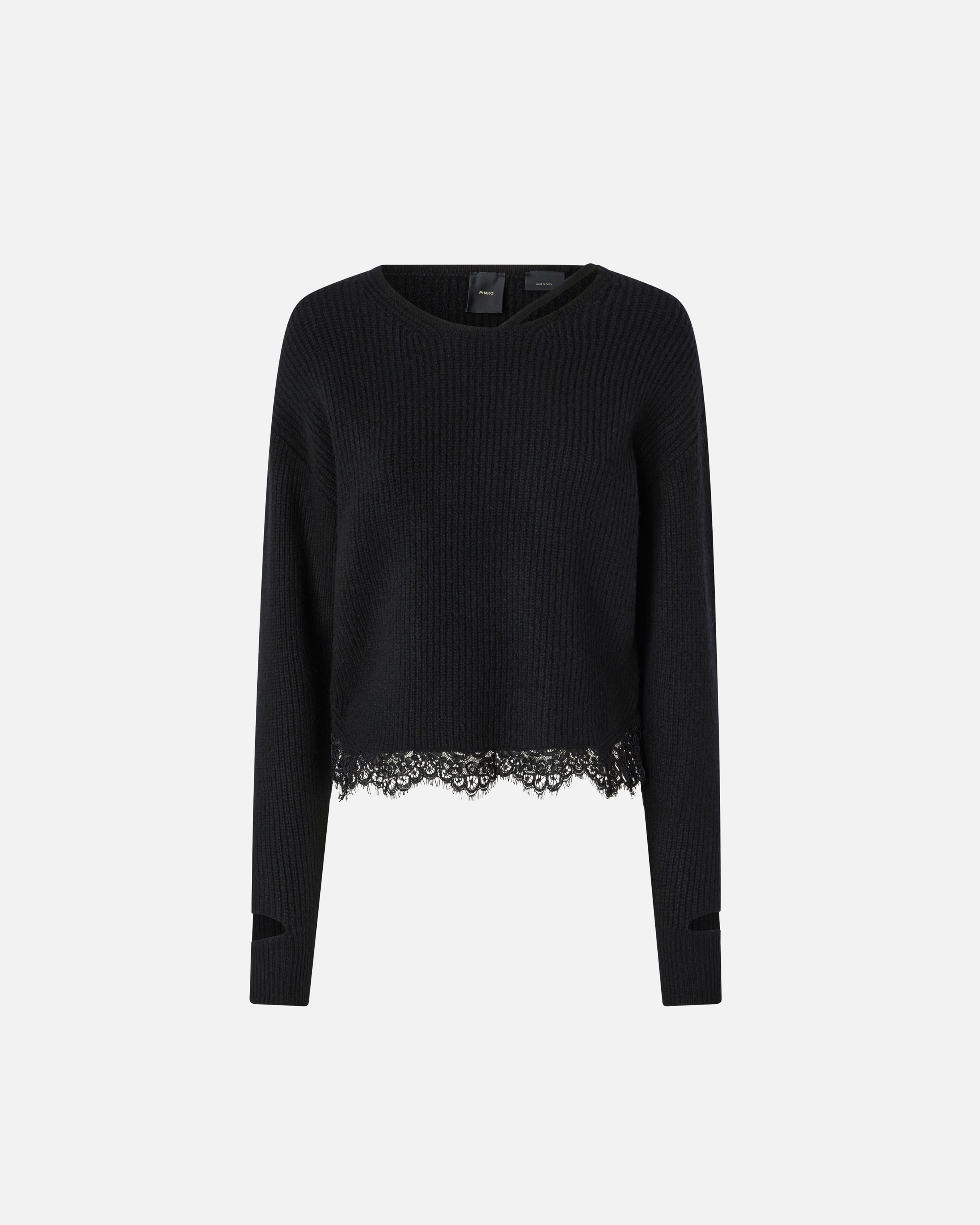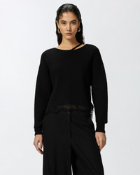 DEMIJOHN KNIT − 100720A238Z99 Women's sweater made of ribbed wool-blend knit, customised with scalloped lace insert at the hem to add a feminine touch. The sweater is a true essential for your daily seasonal looks, and is complemented by cut-out details on the rounded neck and at the ends of the long, low set-in sleeves. COMPOSITION Outside Fabric: WOOL 74% POLYAMMIDE 25% POLYAMIDE 25% ELASTANE 1% - Accessory: POLYAMMIDE 62% POLYAMIDE 62% POLYESTER 22% COTTON 8% VISCOSE 8%