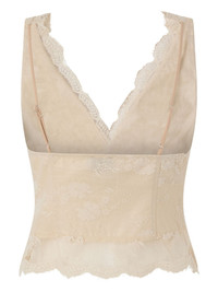 lace V-neck top Highlights - Beige - Floral lace - V-neck - Lace trim - Spaghetti straps - Scalloped hem Imported Composition Organic Linen 100% Washing instructions Hand Wash