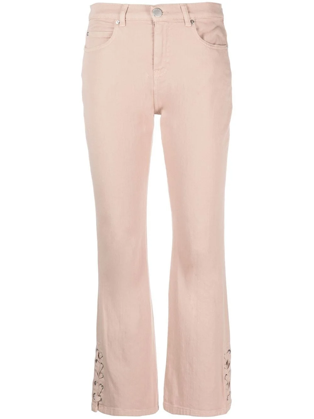 lacing-detail logo-patch bootcut jeans blush pink stretch-cotton lace-up detailing rivet detailing logo-debossed patch to the rear bootcut belt loops front button and zip fastening classic five pockets Imported Composition Lining: Cotton 100% Outer: Cotton 98%, Spandex/Elastane 2% SIZE & FIT Model measurements Height 5 ft 11 in(1.8 m) Bust/Chest 33.07 in(84 cm) Hips 37.4 in(95 cm) Waist 25.19 in(64 cm)