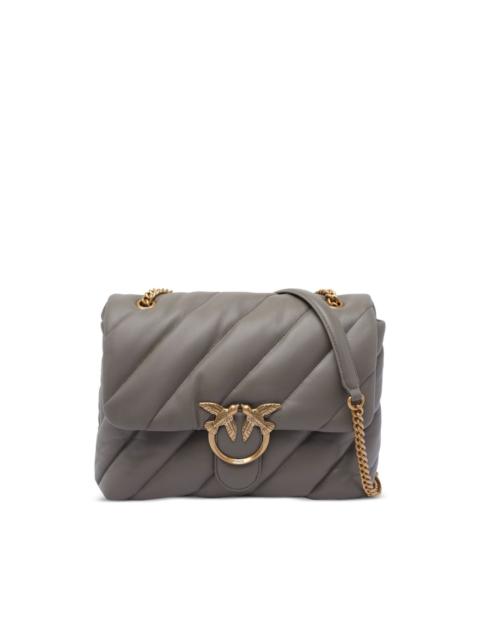 large Love puffer crossbody bag cloud white calf leather quilted finish gold-tone logo plaque foldover top with magnetic fastening chain-link shoulder strap Imported Composition Outer: Calf Leather 100% SIZE & FIT Model measurements Height 5 ft 8 in(1.73 m) Bust/Chest 33.07 in(84 cm) Hips 35.03 in(89 cm) Waist 24.8 in(63 cm) Measurement DEPTH 4.72 in(12 cm) HEIGHT 9.84 in(25 cm) WIDTH 13.38 in(34 cm)