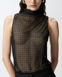 SLEEVELESS TULLE TOP WITH RHINESTONES